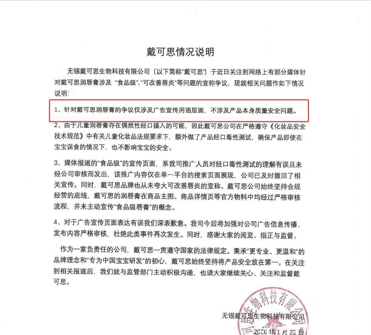 虚假宣传1月23日的时候,一个品牌方在自己的账号上出来道歉了,不看不知道,一看吓一跳,原来是他们的儿童润唇膏宣传语有问题,